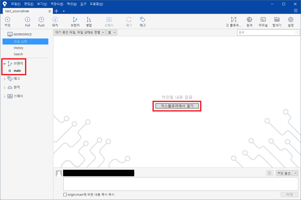 「익스프로러에서 열기」를 누르면 저장소에 있던 README.md 파일이 들어온 것을 확인할 수 있습니다.