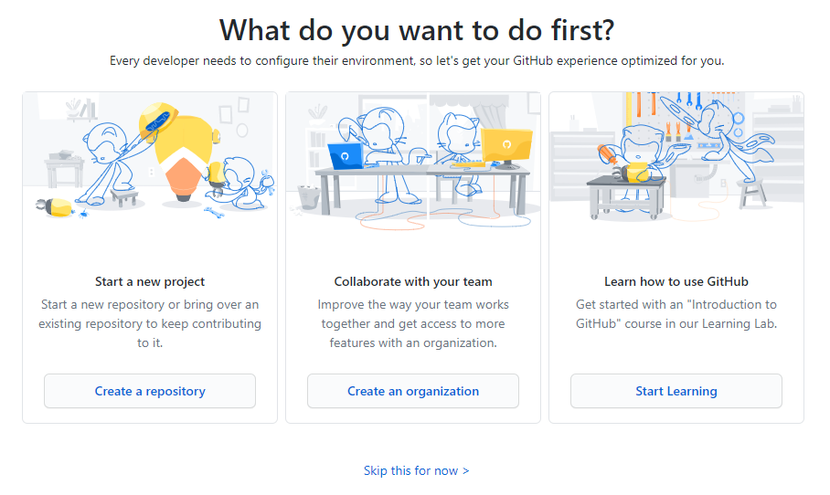 GitHub 가입 승인 메일로 확인받으면 아래 화면을 보실 수 있습니다.